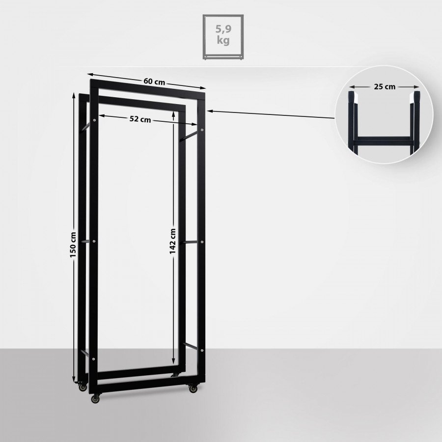 Porta legna CLP Portalegna Keri mit Rollen 25x60x150 nero CL325278