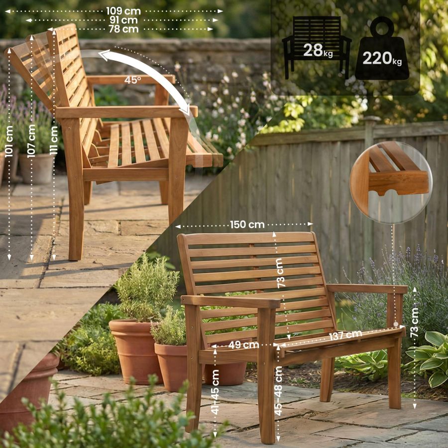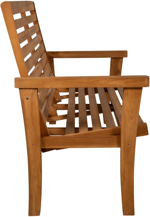 La panca da giardino Nicosia unisce design senza tempo, materiali durevoli e un elevato comfort di seduta. Realizzata in teak massello resistente alle intemperie, colpisce per la linea elegante e pulita e per la calda tonalit dorato?marrone del legno, che si integra facilmente in diversi stili di arredo. La panca in teak dotata di schienale con funzione reclinabile regolabile su tre posizioni.