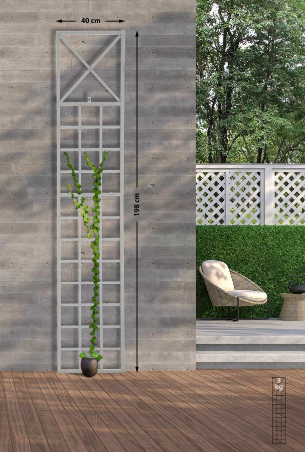 Pu essere utilizzato anche come divisorio decorativo tra le aiuole o come schermo per la privacy. Il supporto per rampicanti stabile grazie al semplice inserimento nel terreno.
