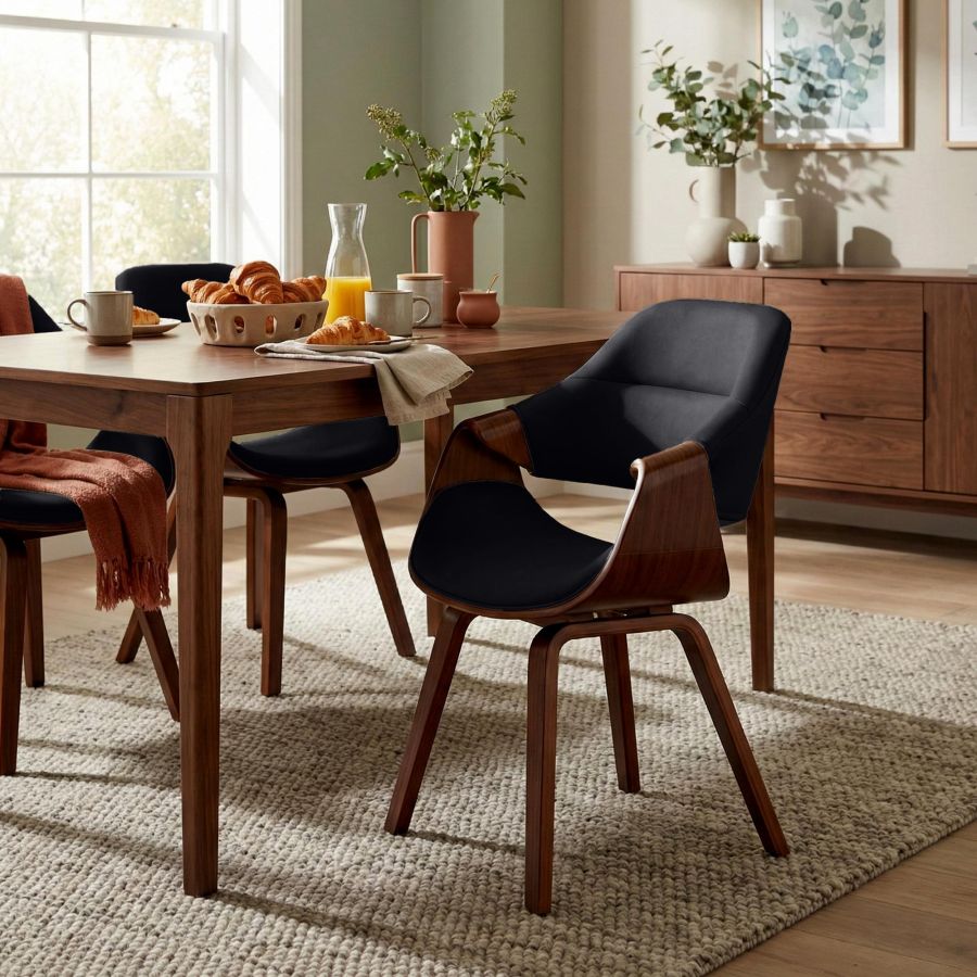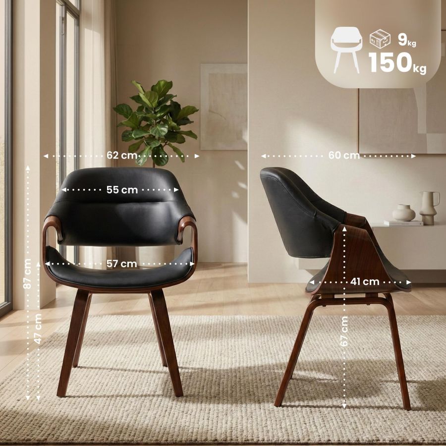 La sedia da pranzo Maira unisce un design Mid-Century senza tempo a un comfort di seduta moderno. Le linee decise della struttura in legno multistrato con elegante finitura effetto noce rendono questa sedia un punto focale in sala da pranzo, cucina o zona lounge. Il progetto curato, con schienale sagomato in modo ergonomico e braccioli integrati, aiuta a mantenere una postura rilassata anche durante l uso prolungato.