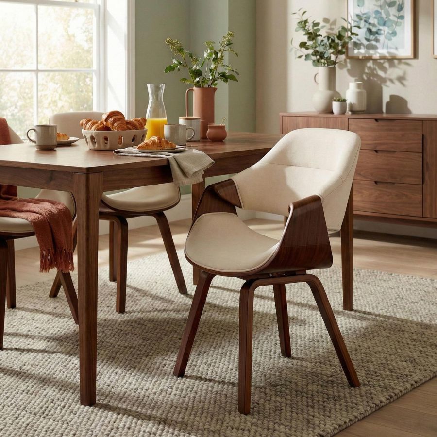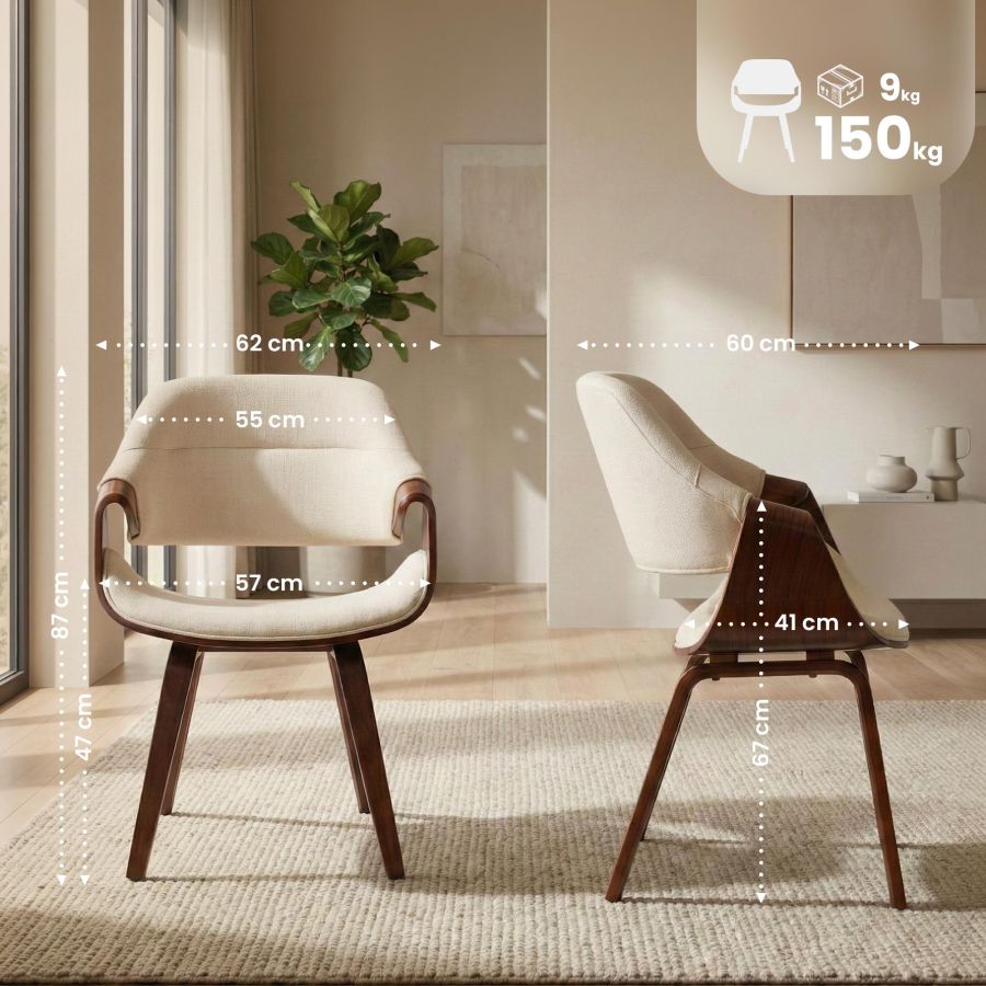 La sedia da pranzo Maira unisce un design Mid-Century senza tempo a un comfort di seduta moderno. Le linee decise della struttura in legno multistrato con elegante finitura effetto noce rendono questa sedia un punto focale in sala da pranzo, cucina o zona lounge. Il progetto curato, con schienale sagomato in modo ergonomico e braccioli integrati, aiuta a mantenere una postura rilassata anche durante l uso prolungato.