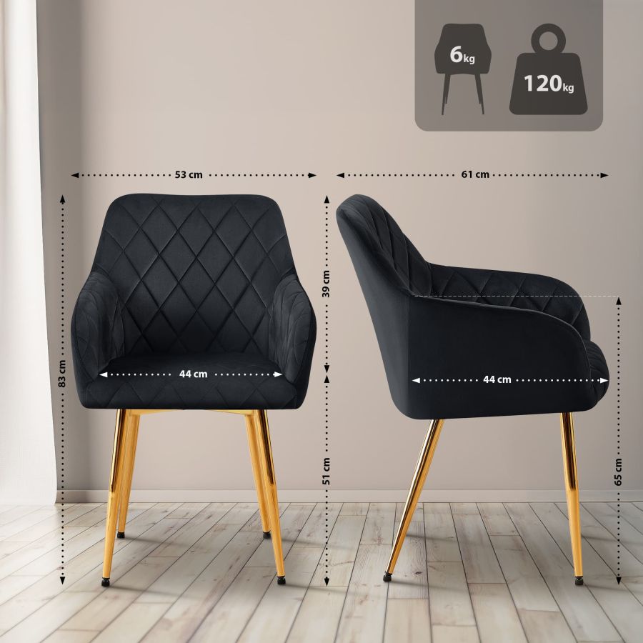 La sedia ha una seduta generosamente imbottita con un motivo trapuntato a rombi. L'imbottitura consente di sedersi comodamente per lunghi periodi di tempo. Il comfort della seduta completato dallo schienale e dai braccioli.