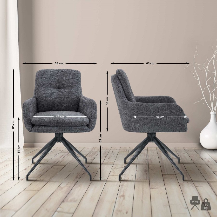 Sedia da pranzo Pickett tessuto grigio scuro