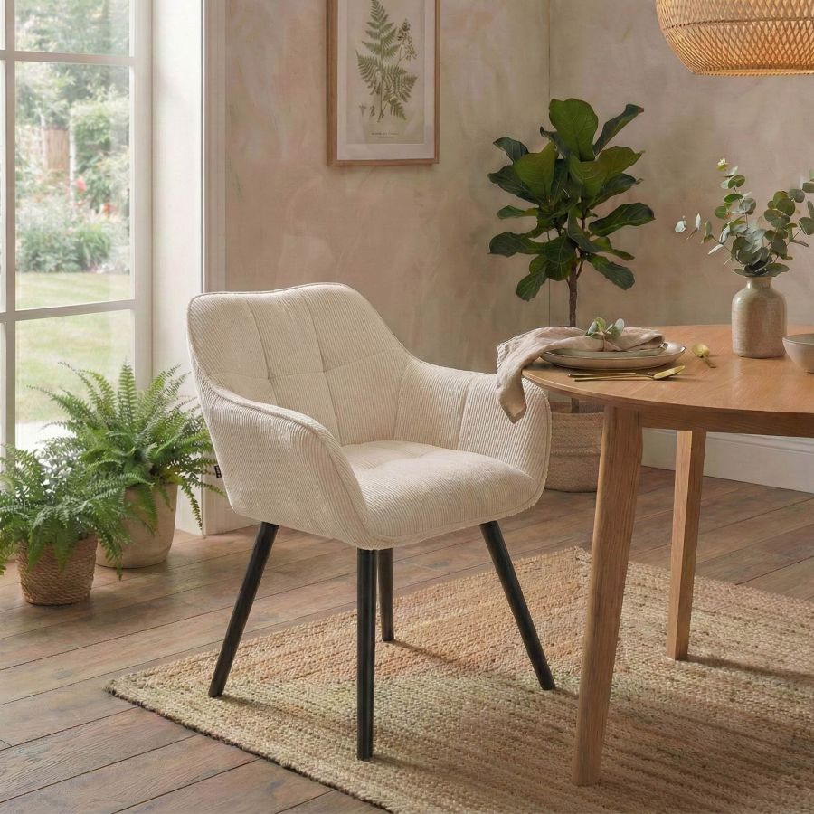 Il comfort garantito dall'imbottitura su seduta, schienale e braccioli, con rivestimento in velluto a coste durevole e facile da pulire. Ideale per uso privato e leggero in ambito commerciale.