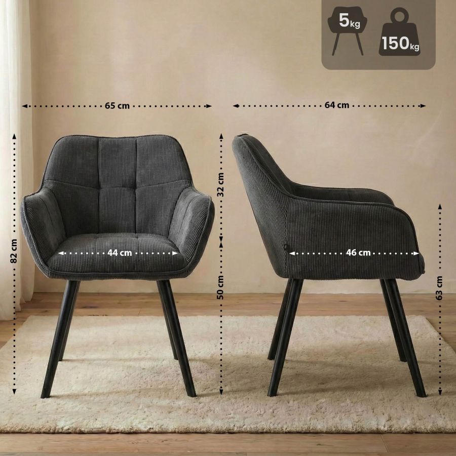 Il comfort garantito dall'imbottitura su seduta, schienale e braccioli, con rivestimento in velluto a coste durevole e facile da pulire. Ideale per uso privato e leggero in ambito commerciale.