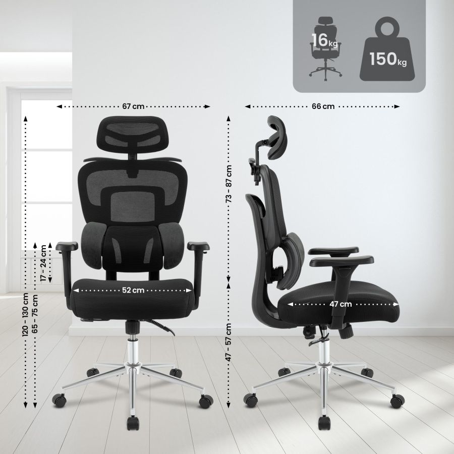 Il comfort aggiuntivo garantito dalla seduta imbottita e dal tessuto a rete traspirante su schienale e poggiatesta. Con una capacit di carico fino a 150 kg, la sedia da ufficio ergonomica Lothenda sia robusta che durevole.