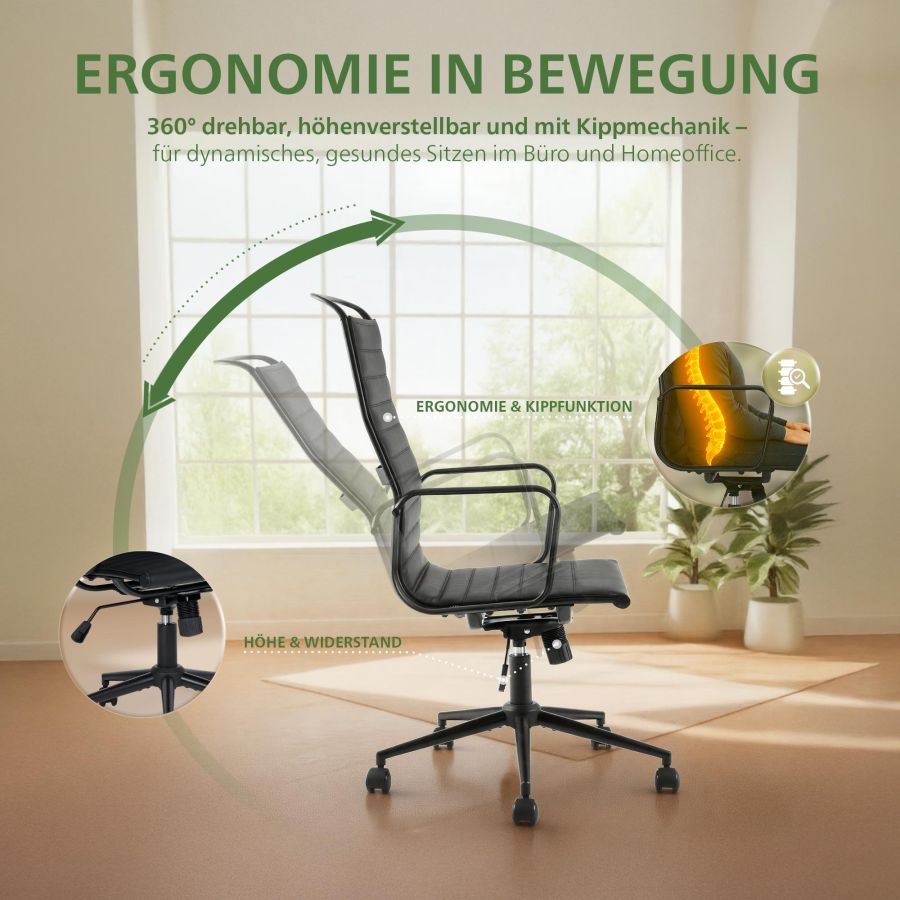 La sedia regolabile in altezza consente un adattamento ottimale a ogni tipo di corporatura, favorendo l'ergonomia e prevenendo il mal di schiena. Il meccanismo di inclinazione integrato ti mantiene in movimento durante le lunghe giornate lavorative, promuovendo una seduta pi salutare. La seduta girevole a 360 gradi offre massima libert di movimento, aumentando la flessibilit.