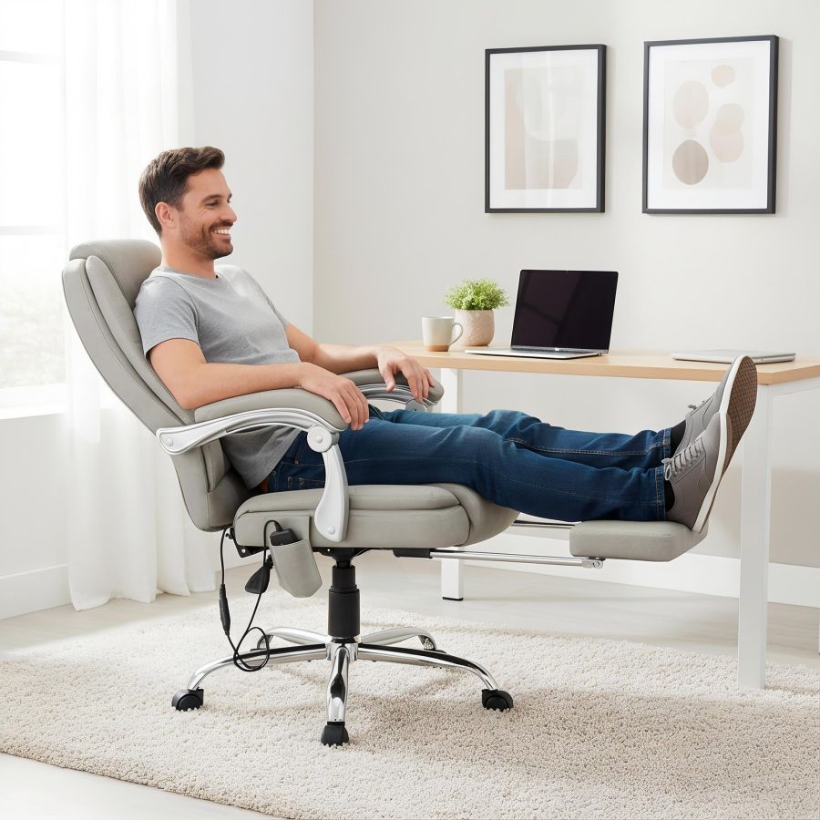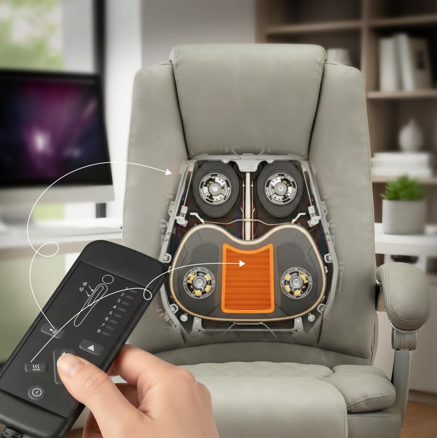 La funzione massaggiante integrata con sistema a 4 punti, cuscino lombare e riscaldamento del sedile assicura relax in ogni pausa lavorativa. Regolabile in altezza da 47 a 54 cm, la sedia si adatta a diverse altezze di tavolo e taglie corporee. Lo schienale inclinabile fissabile in varie posizioni fino a 135, ideale per esigenze individuali.