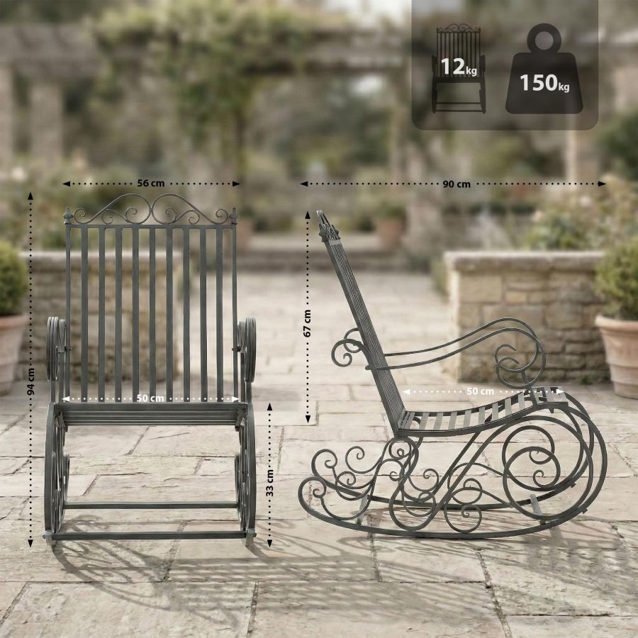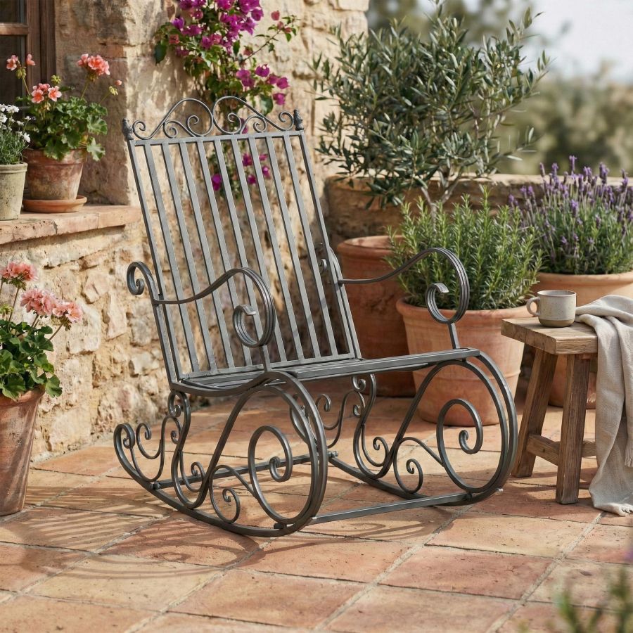 Grazie al suo telaio in metallo elegante, la sedia a dondolo offre una soluzione robusta e raffinata per i vostri mobili da giardino. Il design senza tempo si adatta facilmente a qualsiasi terrazza o veranda, enfatizzando l'estetica naturale del vostro ambiente esterno.