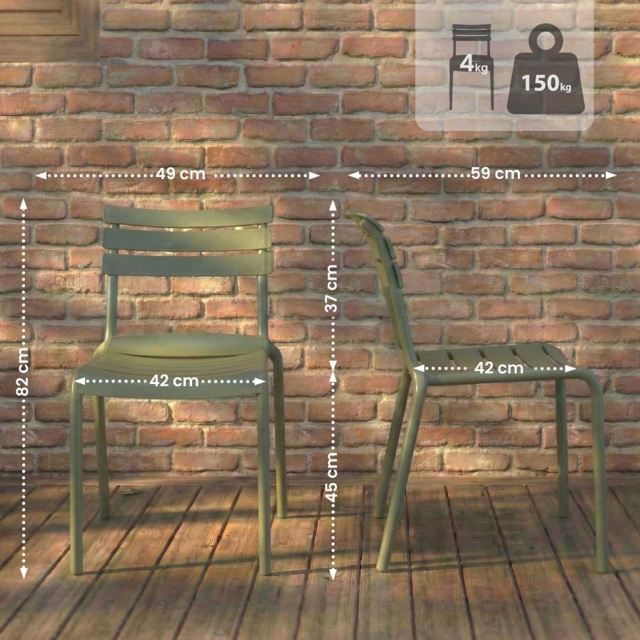Particolarmente pratica per terrazzi e aree ridotte, la sedia e impilabile. Con un peso di soli 4 kg, si sposta facilmente e si ripone in poco spazio quando non serve. La portata fino a 150 kg evidenzia la struttura robusta e la qualita costruttiva per l'uso quotidiano.