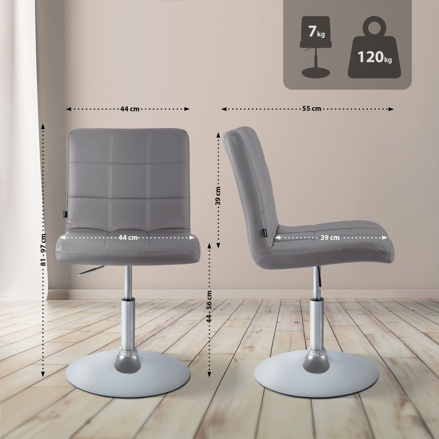 La sedia sgabello bar si presenta comodamente imbottita e trapuntata con motivi quadrati. La base con piedistallo e antiscivolo rende la seduta stabile e piacevole.