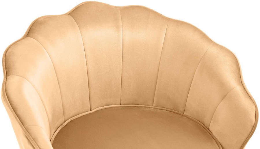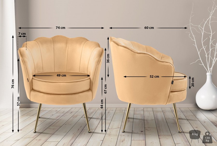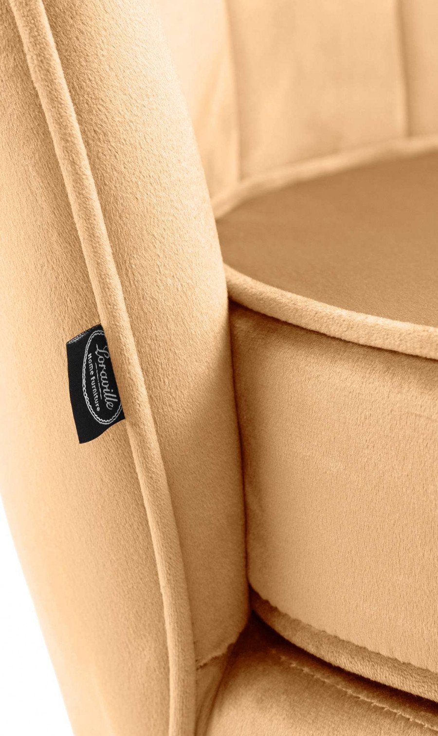 Il look unico creato dalle bellissime cuciture decorative e dallo schienale leggermente frastagliato. In combinazione con le gambe color oro, la poltrona si distingue dalle altre sedie.