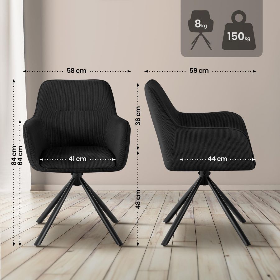 La base di questa poltrona costituita da un telaio a quattro gambe in metallo nero opaco verniciato a polvere. La sedia da pranzo pu sostenere un peso fino a 150 kg.