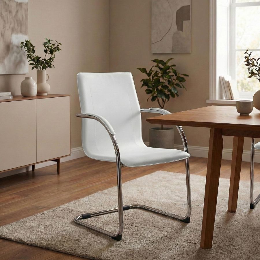 La sedia a sbalzo Noeleen unisce un elevato comfort di seduta a un look moderno e senza tempo. E ideale per il tavolo da pranzo, la cucina e il soggiorno, ma anche per aree di attesa, sale riunioni e ambienti d ufficio.