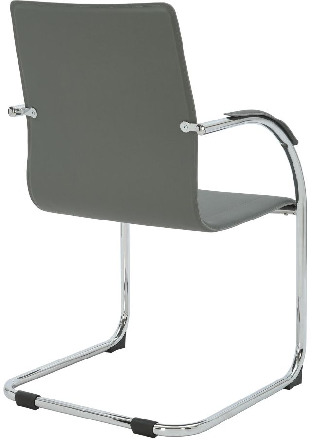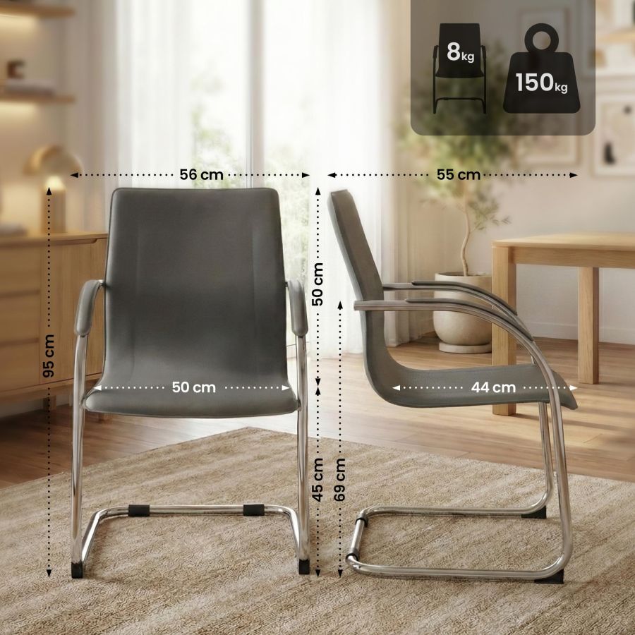 La base di questa sedia e la struttura a sbalzo in metallo resistente con finitura effetto cromo. In questo modo la sedia supporta un carico fino a 150 kg. La leggera oscillazione aumenta il comfort. Le protezioni per il pavimento aiutano a prevenire danni su superfici delicate.