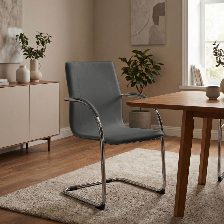 La sedia a sbalzo Noeleen unisce un elevato comfort di seduta a un look moderno e senza tempo. E ideale per il tavolo da pranzo, la cucina e il soggiorno, ma anche per aree di attesa, sale riunioni e ambienti d ufficio.