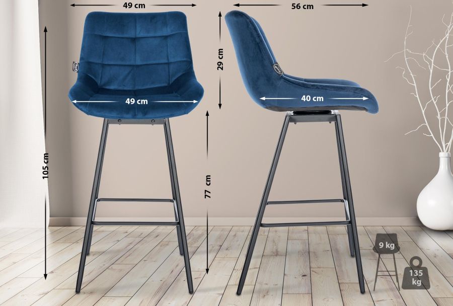 Sgabello da Bar CLP Set 4pz Sgabello da bar Weston Schwenkbar Samt blu CL327345