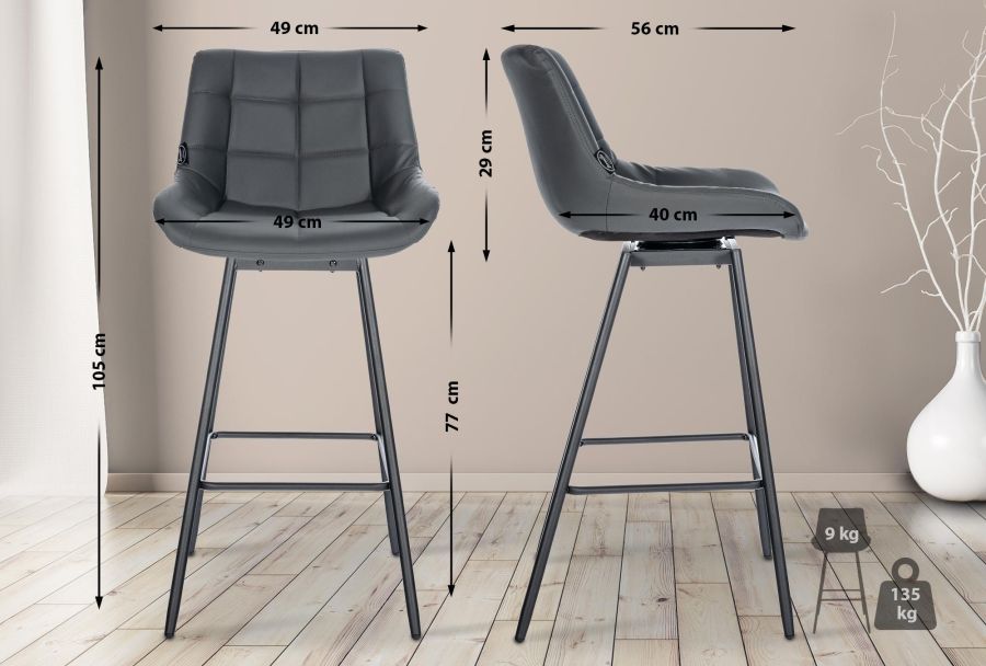 Questo set di quattro sgabelli da bar Weston si distingue per il design moderno e il comfort elevato. Con un'altezza del sedile di 77 centimetri, sono ideali per la maggior parte dei banconi.