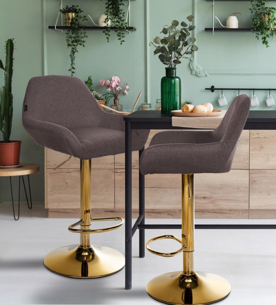 Set di 2 sgabelli da bar Braga in tessuto con struttura dorata