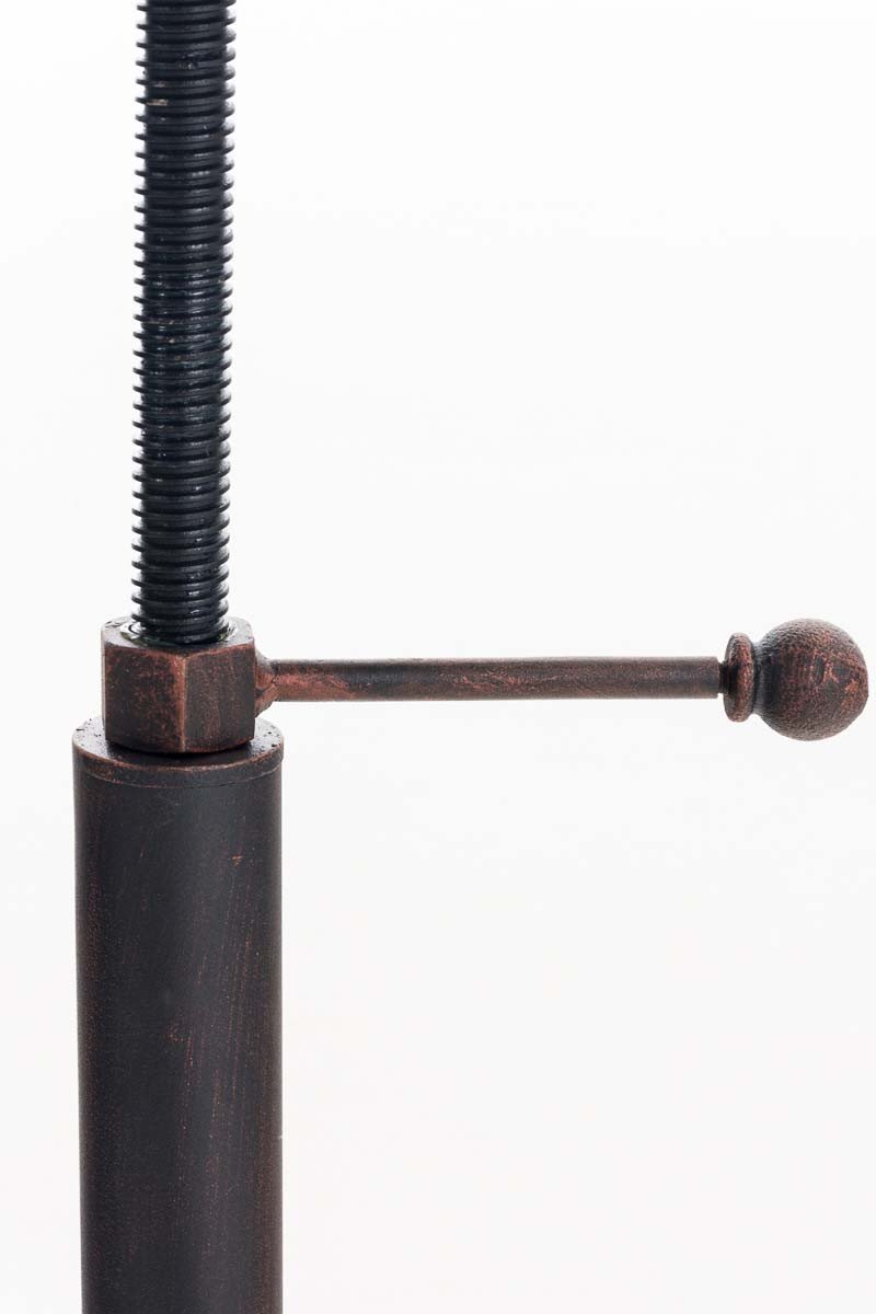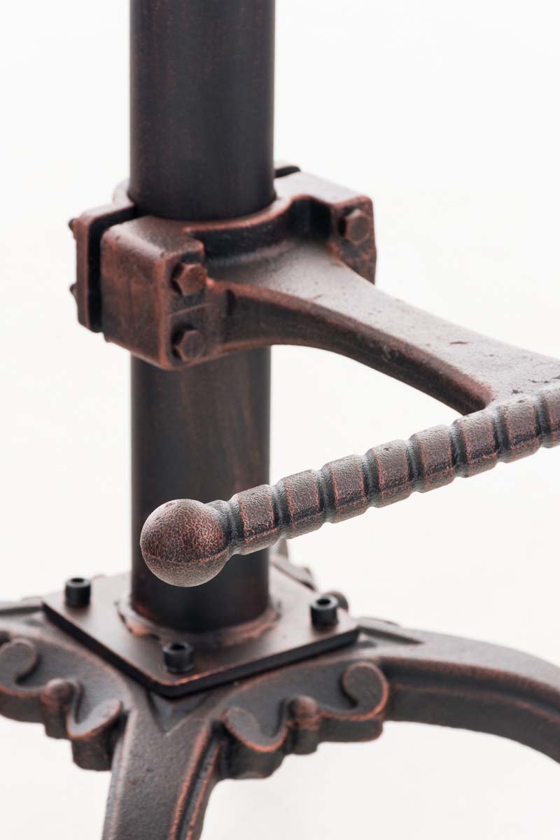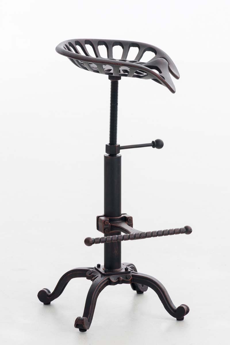 Lo sgabello si caratterizza per il suo look in perfetto stile industriale. La sua seduta in ghisa presenta forme ergonomiche ed estremamente originali, regalandoti comfort pur non avendo imbottitura. La seduta si presenta regolabile in altezza per offrirti la possibilit di adattarla a diverse superfici di tavoli e banconi. Tramite la pratica manovella potrai regolare la seduta per evitare che oscilli. Lo sgabello completo di pratico poggiapiedi per un comfort di seduta massimo. Il robusto telaio a 4 gambe completo di pratici piedini regolabili individualmente, per adattarsi a qualsiasi pavimento. Lo sgabello si presenta realizzato in metallo verniciato a polvere.