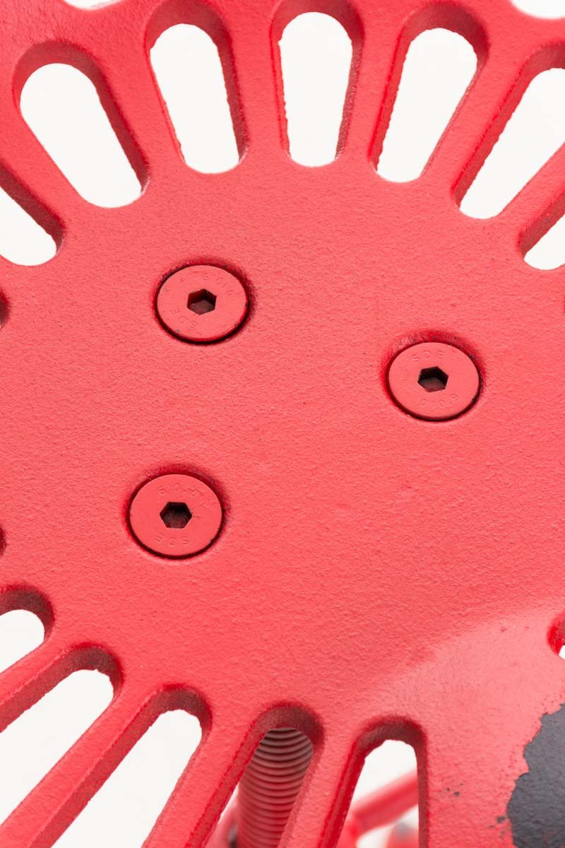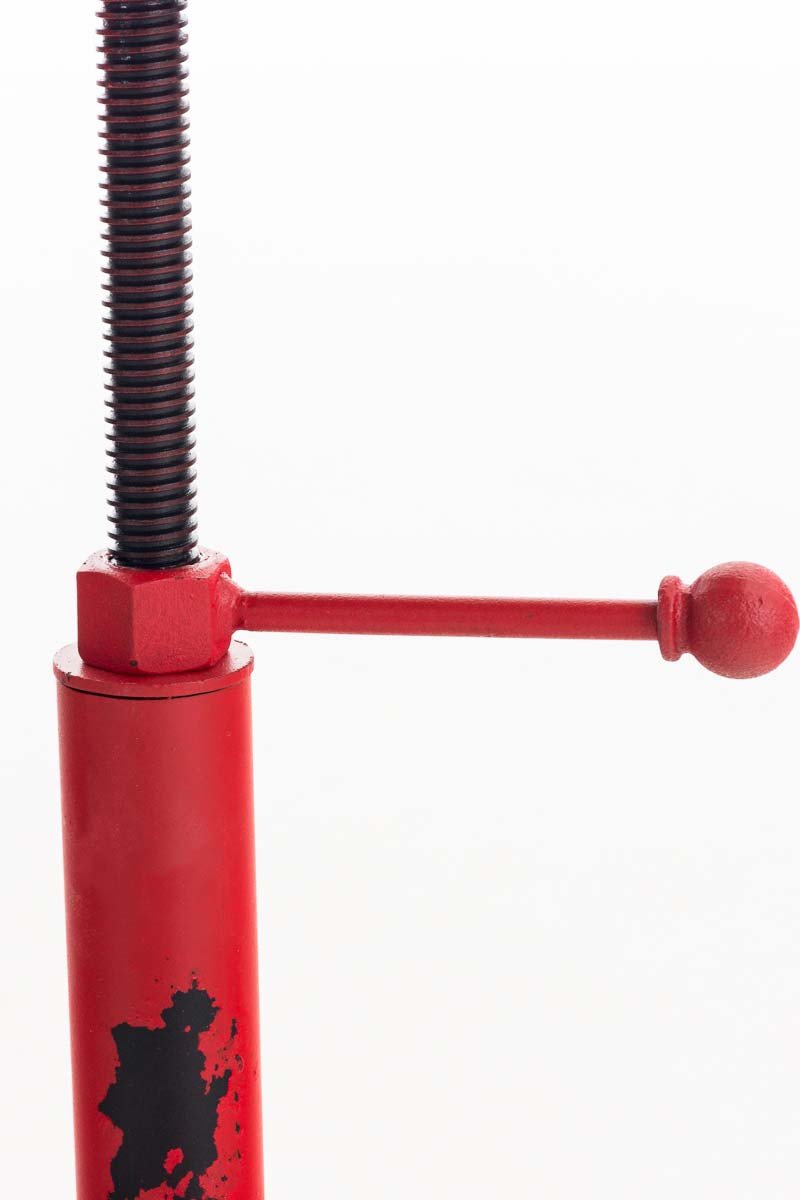 Lo sgabello si caratterizza per il suo look in perfetto stile industriale. La sua seduta in ghisa presenta forme ergonomiche ed estremamente originali, regalandoti comfort pur non avendo imbottitura. La seduta si presenta regolabile in altezza per offrirti la possibilit di adattarla a diverse superfici di tavoli e banconi. Tramite la pratica manovella potrai regolare la seduta per evitare che oscilli. Lo sgabello completo di pratico poggiapiedi per un comfort di seduta massimo. Il robusto telaio a 4 gambe completo di pratici piedini regolabili individualmente, per adattarsi a qualsiasi pavimento. Lo sgabello si presenta realizzato in metallo verniciato a polvere.