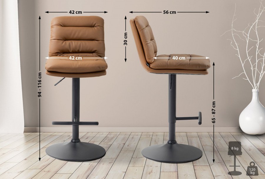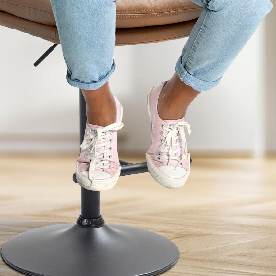 La struttura dello sgabello e il rivestimento alla moda conferiscono allo sgabello un aspetto elegante. Il sedile rivestito in ecopelle di facile manutenzione. La struttura in metallo regolabile in altezza e la funzione girevole a 360 gradi garantisce un'ampia libert di movimento.