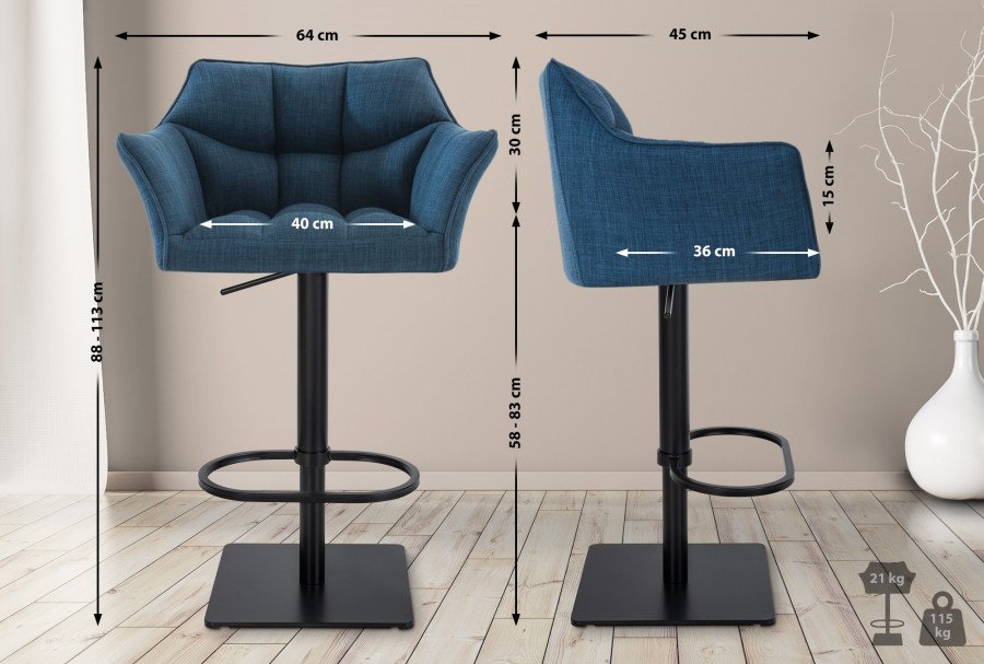 Forme sinuose e colori alla moda rendono il set di 2 sgabelli Da Damaso un punto focale ottico in ogni bar. Gli schienali a forma di poltrona convincono oltre al loro aspetto moderno anche per il loro alto comfort. I braccioli rialzati intorno vengono integrati con uno schienale imbottito. La delicata fodera in tessuto disponibile in vari colori, offrendo cos la massima libert di progettazione. La struttura compatta dotata di un meccanismo di rotazione scorrevole e di regolazione continua dell'altezza tramite un semplice comando a leva. Al centro della struttura si trova un poggiapiedi, fondamentale per una corretta postura seduta.