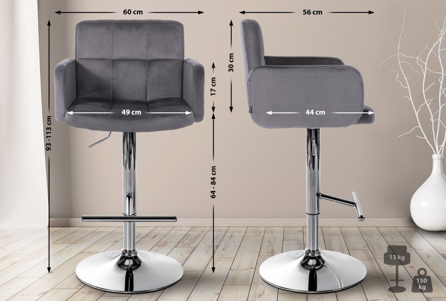 Set di 2 sgabelli da bar Los Angeles Samt - cromo grigio scuro