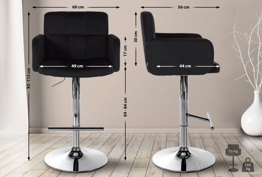 Set di 2 sgabelli da bar Los Angeles Samt - cromo nero