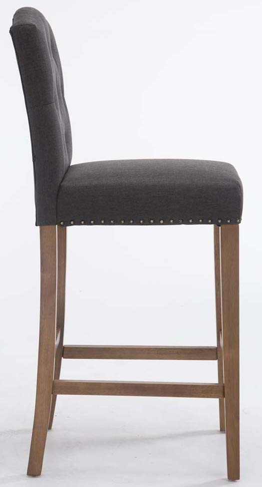 La seduta imbottita dello sgabello bar estremamente comoda e confortevole. Il rivestimento in tessuto dona alla sedia sgabello un look unico e raffinato. La combinazione dei materiali della seduta e il legno di caucci della base conferisce ad ogni bar, bistrot o locale un look unico e ricercato. Ulteriore particolarit di questo sgabello imbottito data dai suoi eleganti bottoni decorativi applicati allimbottitura trapuntata. Il telaio in legno di caucci garantisce una costruzione stabile e duratura. La seduta in stoffa offre semplice manutenzione.