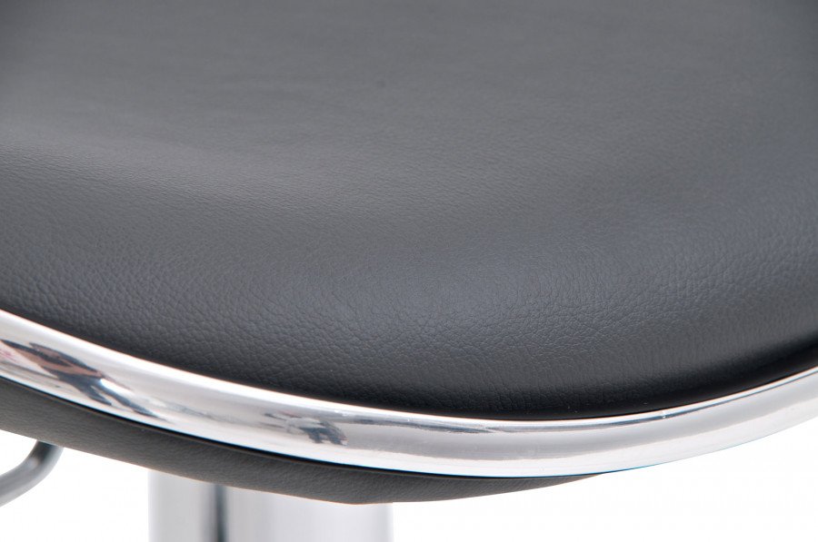 Coppia di sgabelli design moderno con scocca imbottita e rivestita in similpelle 100% poliuretano, robusto e facile da smacchiare. La scocca vanta linee moderne e sinuose, il taglio grafico della seduta si combina con un telaio robusto in metallo cromato, completo di pratico poggiapiedi. La base tonda della sedia alta da cucina dotata di antigraffio e antiscivolo. I due sgabelli bar sono girevoli a 360 e regolabili in altezza.