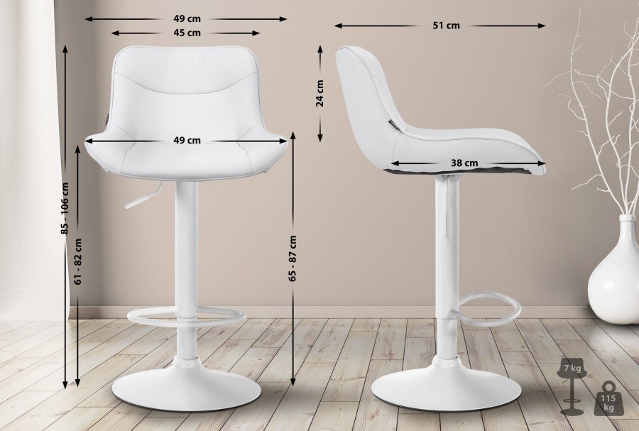 Lo sgabello da bar Vonore in similpelle unisce funzionalit e design moderno. Lo sgabello da bar regolabile in altezza offre una seduta imbottita e una forma ergonomica per un comfort ottimale. La funzione girevole a 360 e la regolazione continua dell'altezza consentono posizioni di seduta flessibili.