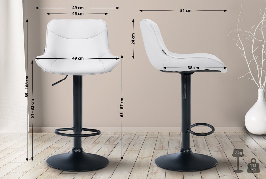 Lo sgabello da bar Vonore in similpelle unisce funzionalit e design moderno. Lo sgabello da bar regolabile in altezza offre una seduta imbottita e una forma ergonomica per un comfort ottimale. La funzione girevole a 360 e la regolazione continua dell'altezza consentono posizioni di seduta flessibili.