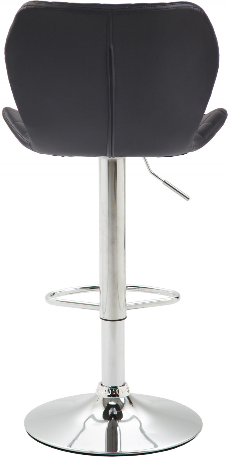 Sedia alta da cucina con comodo schienale e scocca dal taglio grafico rtro moderno. Le superfici della seduta si presentano imbottite e rivestite in similpelle elastica 100% poliuretano: resistente all'usura e facile da smacchiare. La trapuntatura a motivi romboidali ne caratterizza il disegno, la fascia centrale liscia sigilla lo stile del complemento arredo. Lo sgabello da bancone poggia su un piedistallo in metallo cromato, completo di poggiapiedi e base tonda integrata di antiscivolo. La sedia per isola cucina sia girevole 360 e comodamente regolabile in altezza.