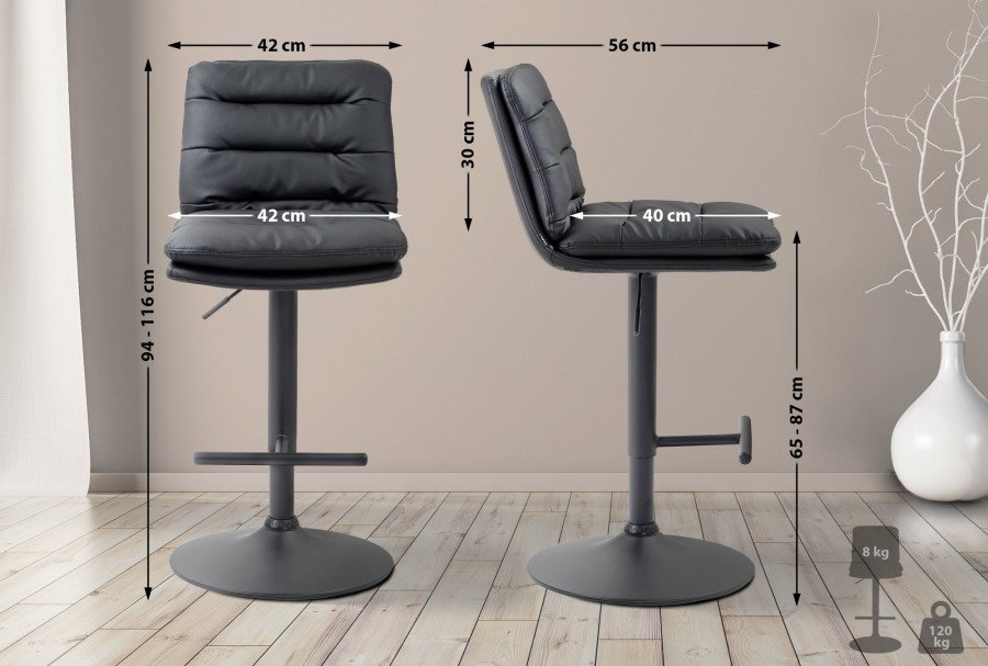 La struttura dello sgabello e il rivestimento alla moda conferiscono allo sgabello un aspetto elegante. Il sedile rivestito in ecopelle di facile manutenzione. La struttura in metallo regolabile in altezza e la funzione girevole a 360 gradi garantisce un'ampia libert di movimento.