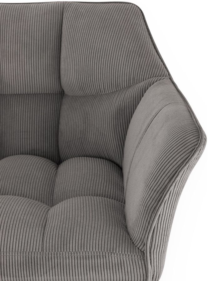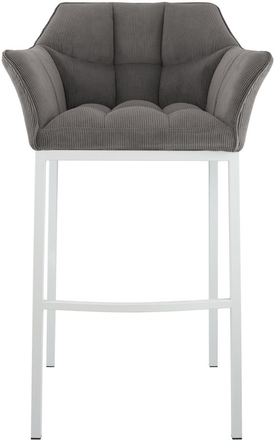 Lo sgabello deve il suo aspetto attraente all'elegante combinazione tra il rivestimento in velluto a coste e la struttura in metallo a quattro gambe.