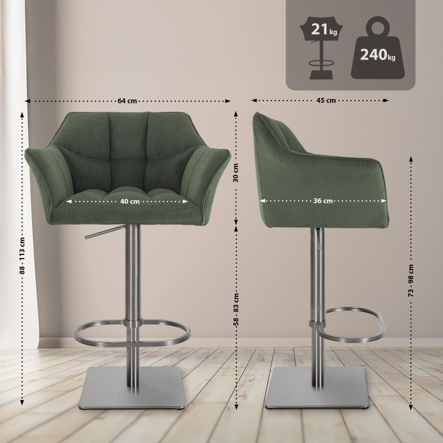 Sgabello da bar Damaso E Cord verde