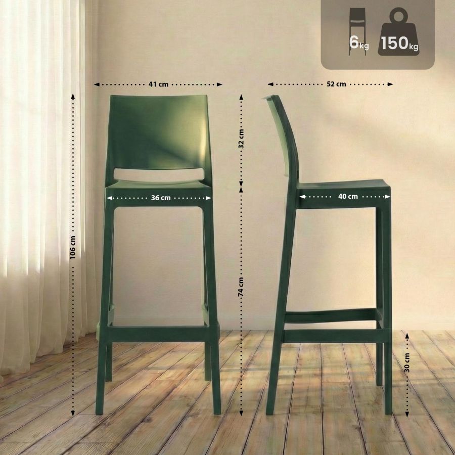 Realizzato in polipropilene resistente ai raggi UV e alle temperature, lo sgabello da bar Flamur si distingue per la sua alta resistenza alle intemperie. Questo lo rende adatto non solo per l'uso interno, ma anche per l'uso esterno. una scelta eccellente per terrazze e balconi.