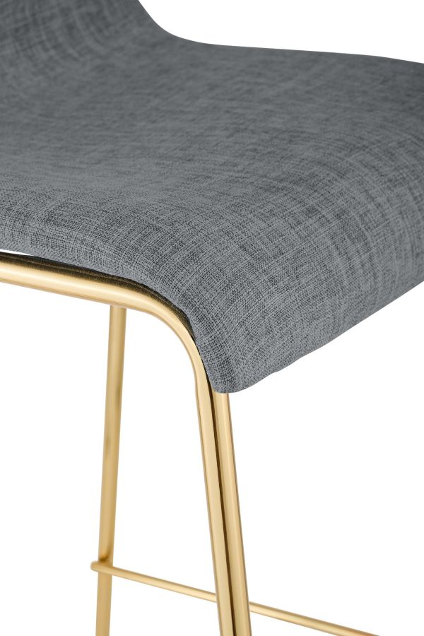 La seduta e lo schienale rivestiti in tessuto offrono una seduta confortevole e supportano la zona lombare. Un poggiapiedi integrato fornisce ulteriore comfort. L'aspetto elegante dello sgabello merito della struttura in metallo effetto oro.