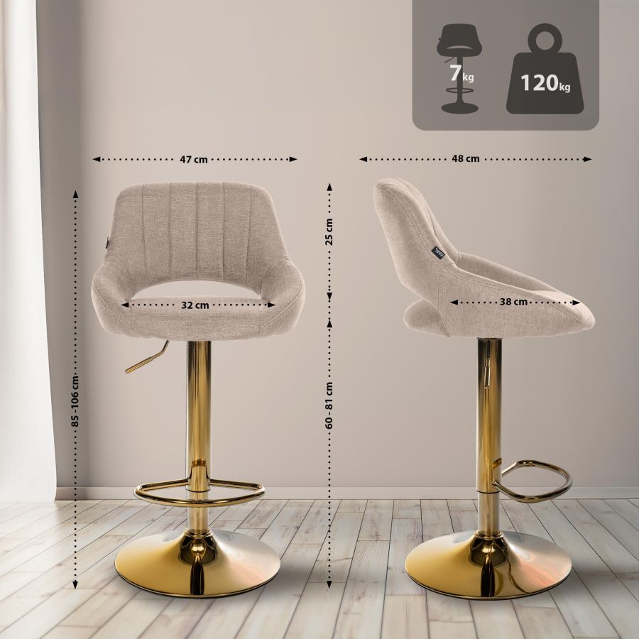 Sgabello da Bar CLP Sgabello da bar Milet tessuto - oro grigio talpa CL327396