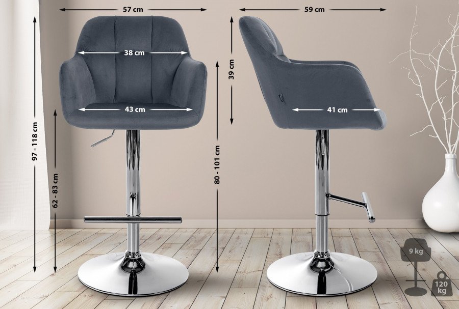 Sgabello da bar Natoma Samt - cromo grigio scuro