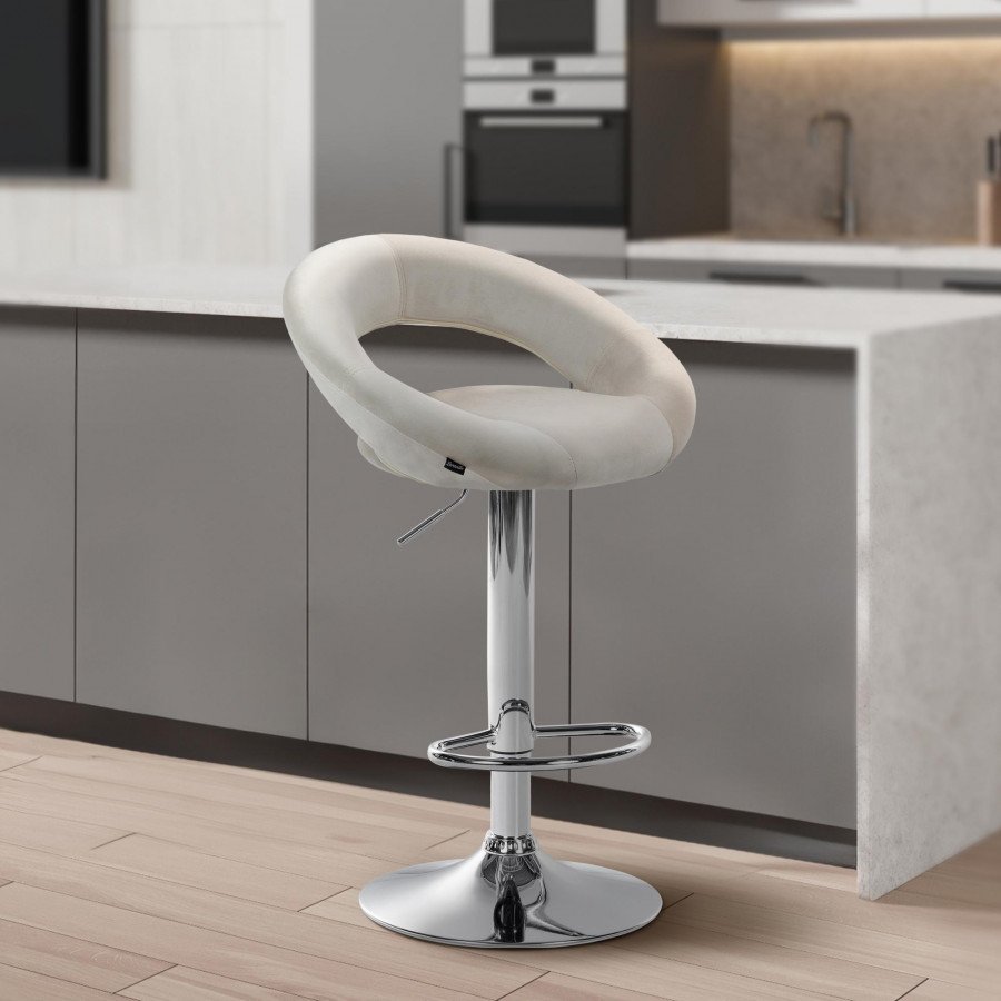 Sgabello da bar Olinda Samt - cromo crema