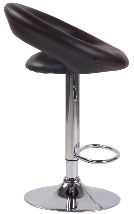 Elegante sgabello pub con seduta imbottita e dal taglio grafico. La sedia alta da bancone rivestita con fodera in similpelle 100% poliuretano ed dotata di base solida in metallo, con base tonda. La seduta dello sgabello design girevole a 360 e regolabile in altezza tramite pratica leva. Il telaio completo di poggiapiedi e sotto al piatto della base applicato un antigraffio, che permette di proteggere i pavimenti. Sia il telaio che la fodera sono disponibili in diversi colori a scelta.