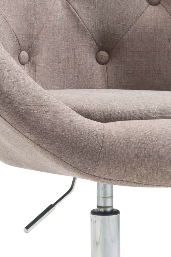 Questo sgabello girevole colpisce non solo per il suo design, ma anche per l'estremo comfort. Il sedile, ben imbottito, trapuntato e ha un rivestimento in tessuto di facile manutenzione. Il comodo sgabello anche regolabile in altezza e, grazie ai materiali di facile manutenzione, pu essere pulito rapidamente e facilmente. La struttura stabile su un telaio in metallo con un aspetto cromato. Dotato di cinque ruote scorrevoli, si pu scorrere facilmente su qualsiasi pavimento, sia duro che con moquette senza prvocare danni.