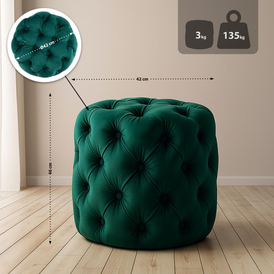 L'elegante pouf multiuso spicca per il suo marcato stile Chesterfield, dato dall'imbottitura trapuntata, e la pregiata stoffa con cui realizzato. Lo sgabello basso risulta comodo e pu essere utilizzato sia come comoda seduta, ma anche come poggiapiedi da divano o come punto di appoggio in salotto. Le sue linee eleganti e le forme semplici lo rendono l'ideale per impreziosire i vostri ambienti grazie anche alle svariate colorazioni ordinabili e alle diverse grandezze, indispensabili per poter soddisfare qualunque esigenza.