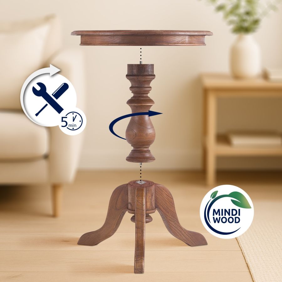 Il tavolino Wiva combina un design elegante con dimensioni funzionali. Con un diametro di 50 cm e un'altezza di 64 cm, offre uno spazio generoso pur mantenendo una struttura compatta. Realizzato in legno di Mindiholz di alta qualit, la venatura naturale del legno dona un aspetto caldo e accogliente.