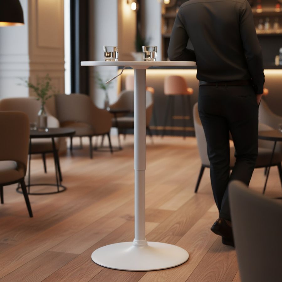 Il tavolo da bar Xanten la soluzione ideale per concetti abitativi eleganti e flessibili. Essendo regolabile in altezza con sollevamento a gas, consente di adattare l'altezza del tavolo secondo le necessit. La lavorazione durevole con piano in MDF spesso 2 cm e struttura robusta in acciaio verniciato a polvere garantisce una capacit di carico fino a 80 chilogrammi.