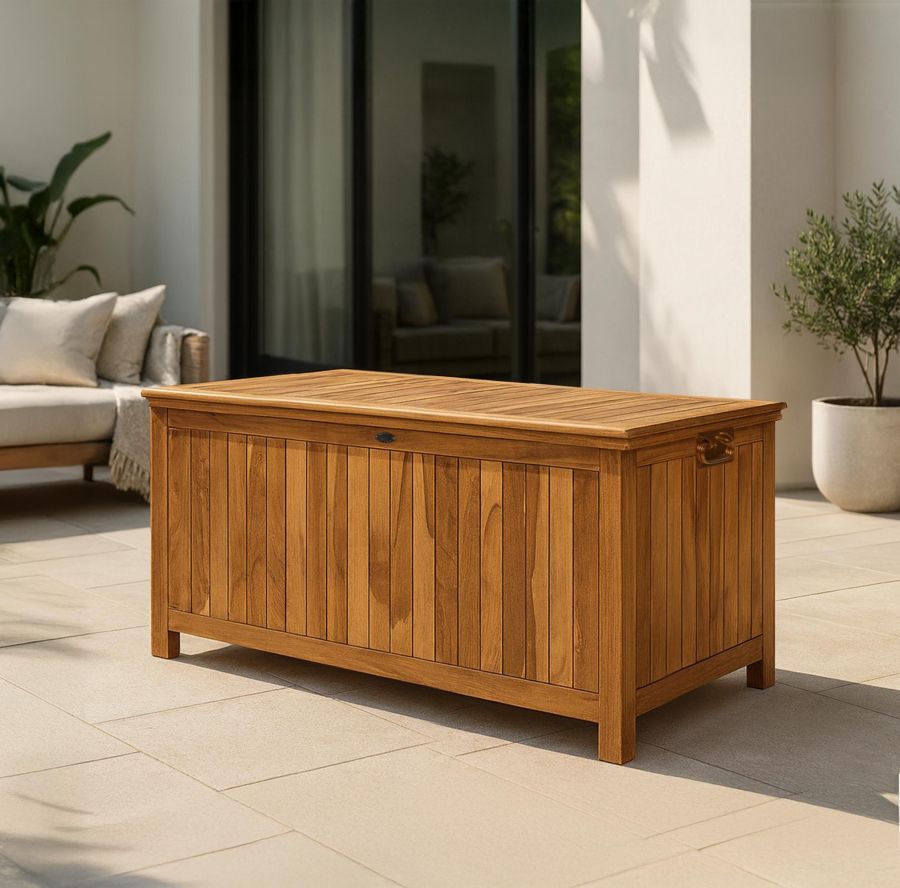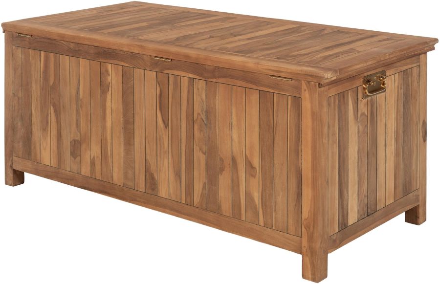 Realizzata in teak certificato, questa cassa artigianale impressiona per la sua grana di legno naturale ed elegante.