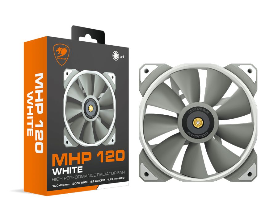Ventole Cougar VENTOLA X CABINET 3MMHP12W1 MHP 120 WHITE 120x120x25mm 600-2000rpm BIANCA COCFMHP12HBWCGR-CF-MHP12HB-W. Tipo: Raffreddatore d'aria, Diametro del ventilatore: 12 cm, Flusso d'aria: 143,53 m³/h, pressione dell'aria massima: 4,24 mmH2O. Larghezza: 120 mm, Profondità: 120 mm, Altezza: 25 mm. Colore del prodotto: Bianco