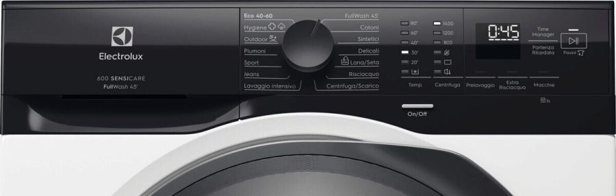 Programma FullWash45': lava a 30º in soli 45 minuti, anche a pieno carico. È ideale per carichi leggermente sporchi, capi di tutti i giorno, tessuti misti e cotoni colorati.